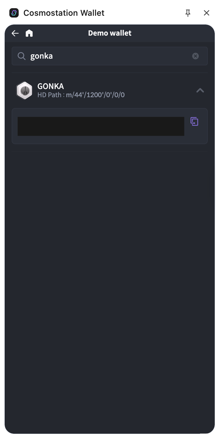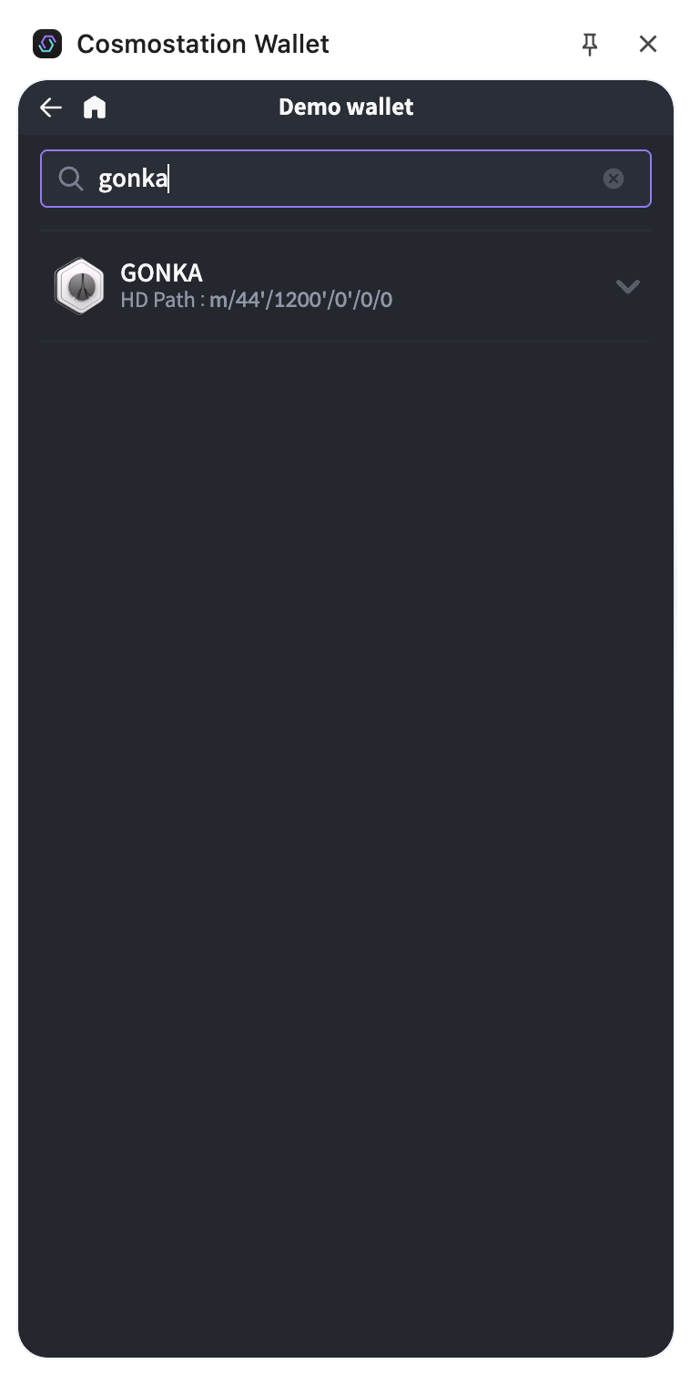 Type “Gonka” into the search bar and select Gonka chain to add it to your wallet.