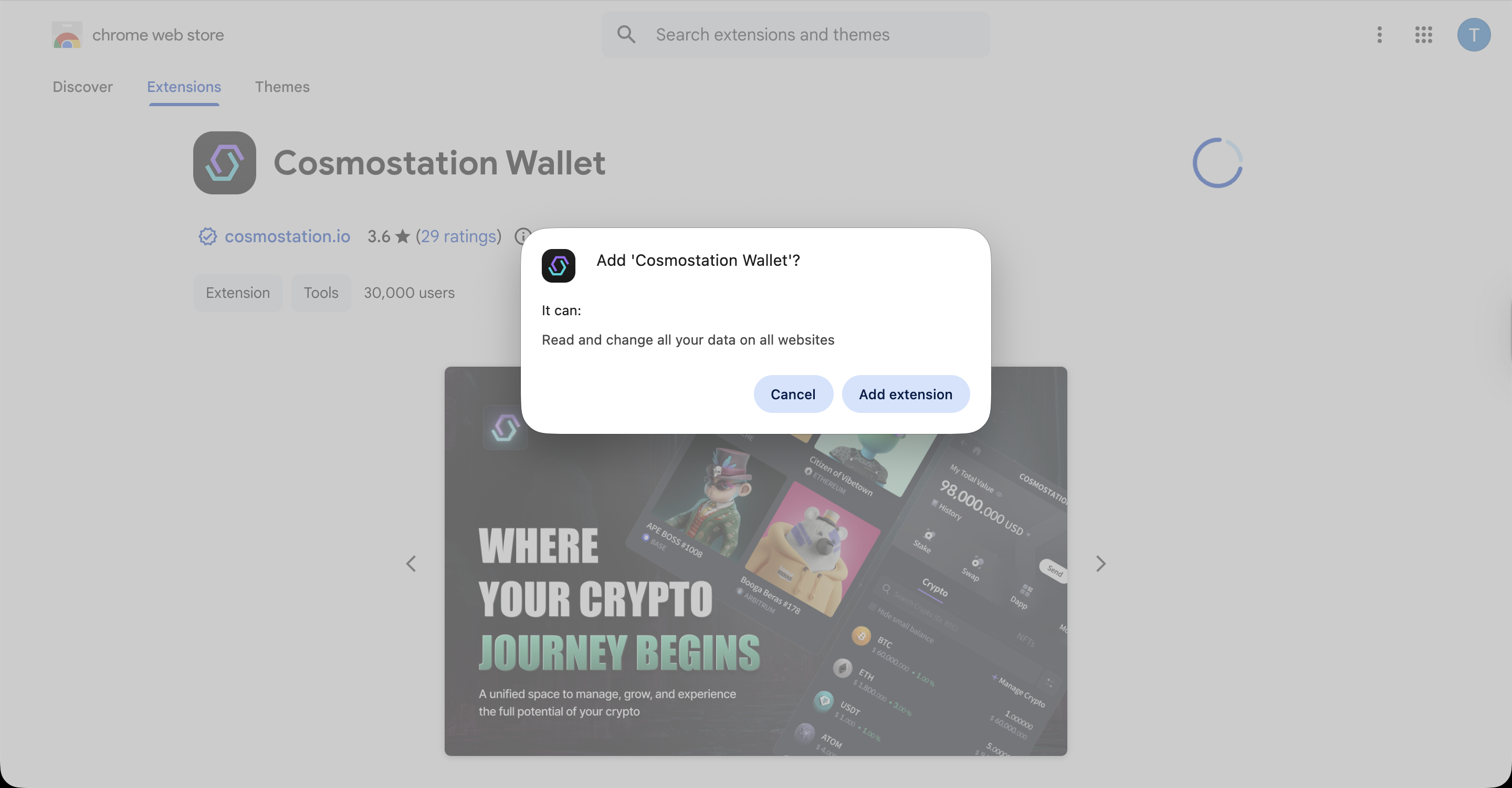Get Cosmostation Wallet browser extension.