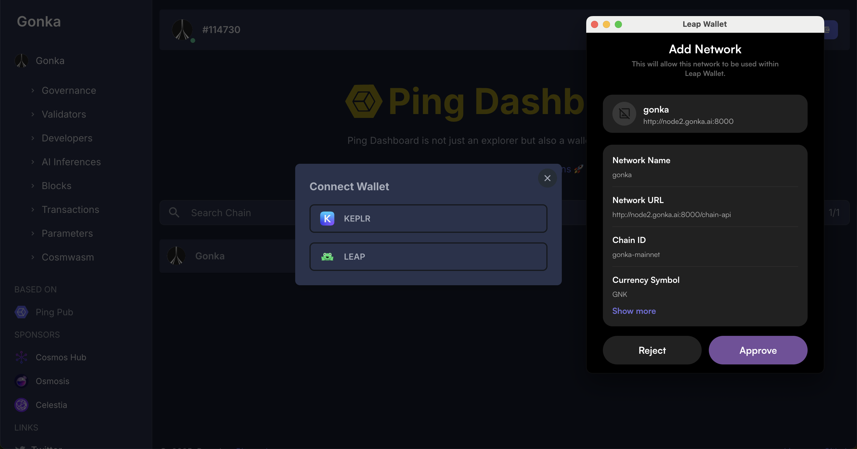 You will see a prompt to add a custom Gonka chain to your wallet. Approve and add Gonka chain.