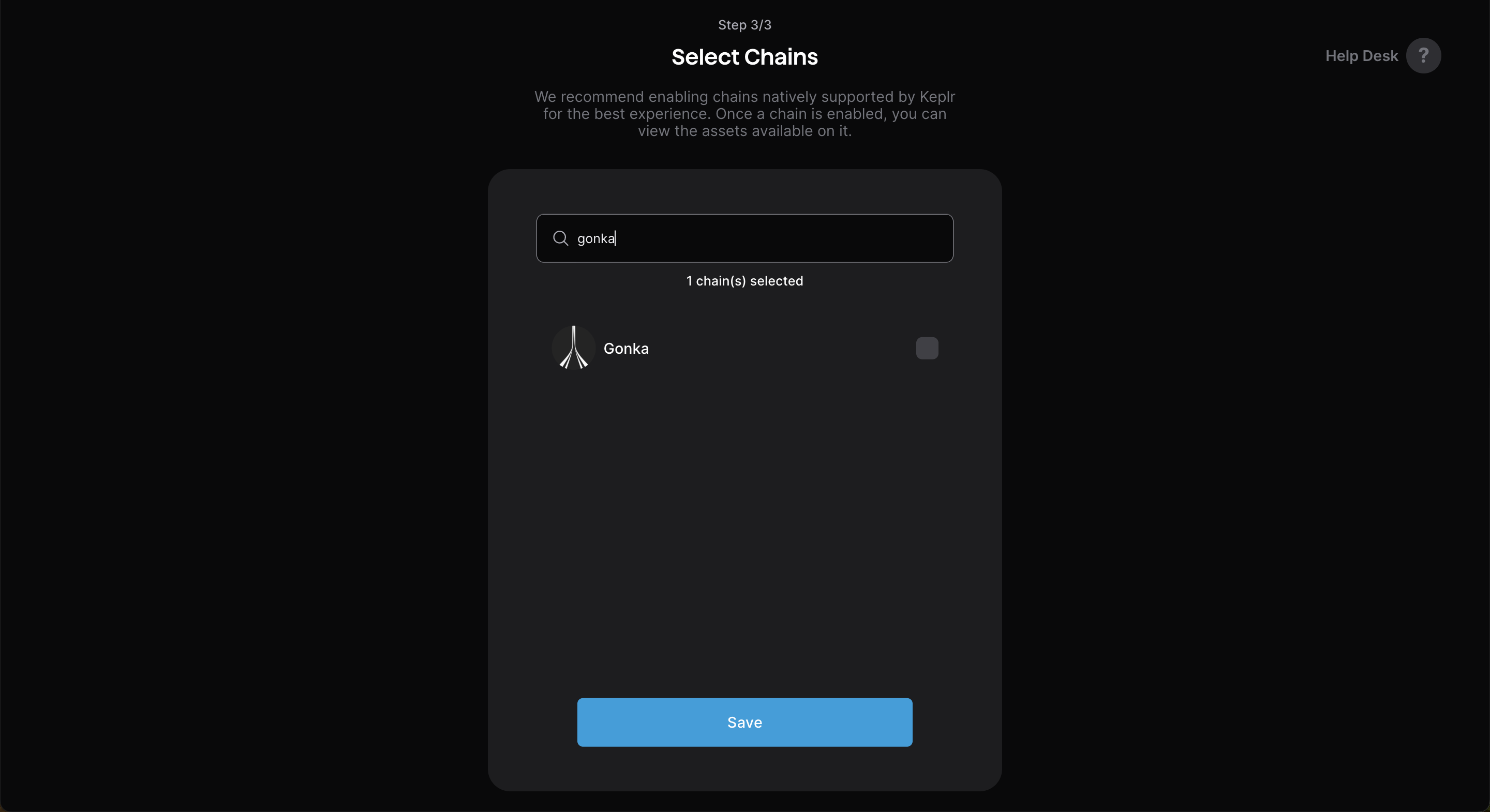 在搜索栏中输入"Gonka"并选择 Gonka 链将其添加到钱包。